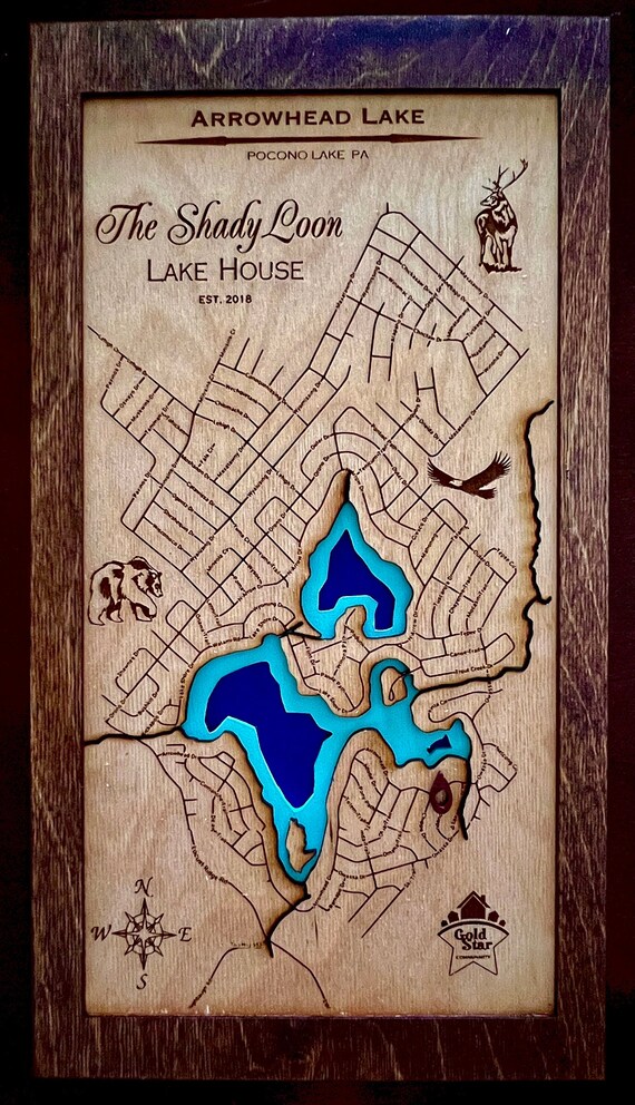 Buy Arrowhead Lake PA 3D Wood Map Custom Nautical Map Cabin Online