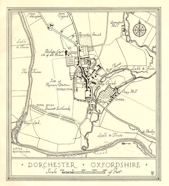Town plan of DORCHESTER, Oxfordshire. Thames Valley 1929 old