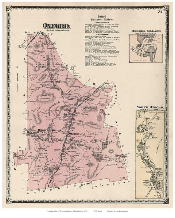 Oxford 1870 Hodges Village North Oxford Old Town Map With