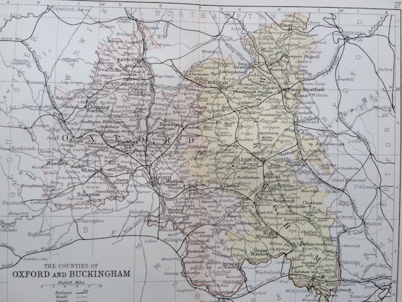 1882 Oxfordshire and Buckinghamshire Original Antique Map