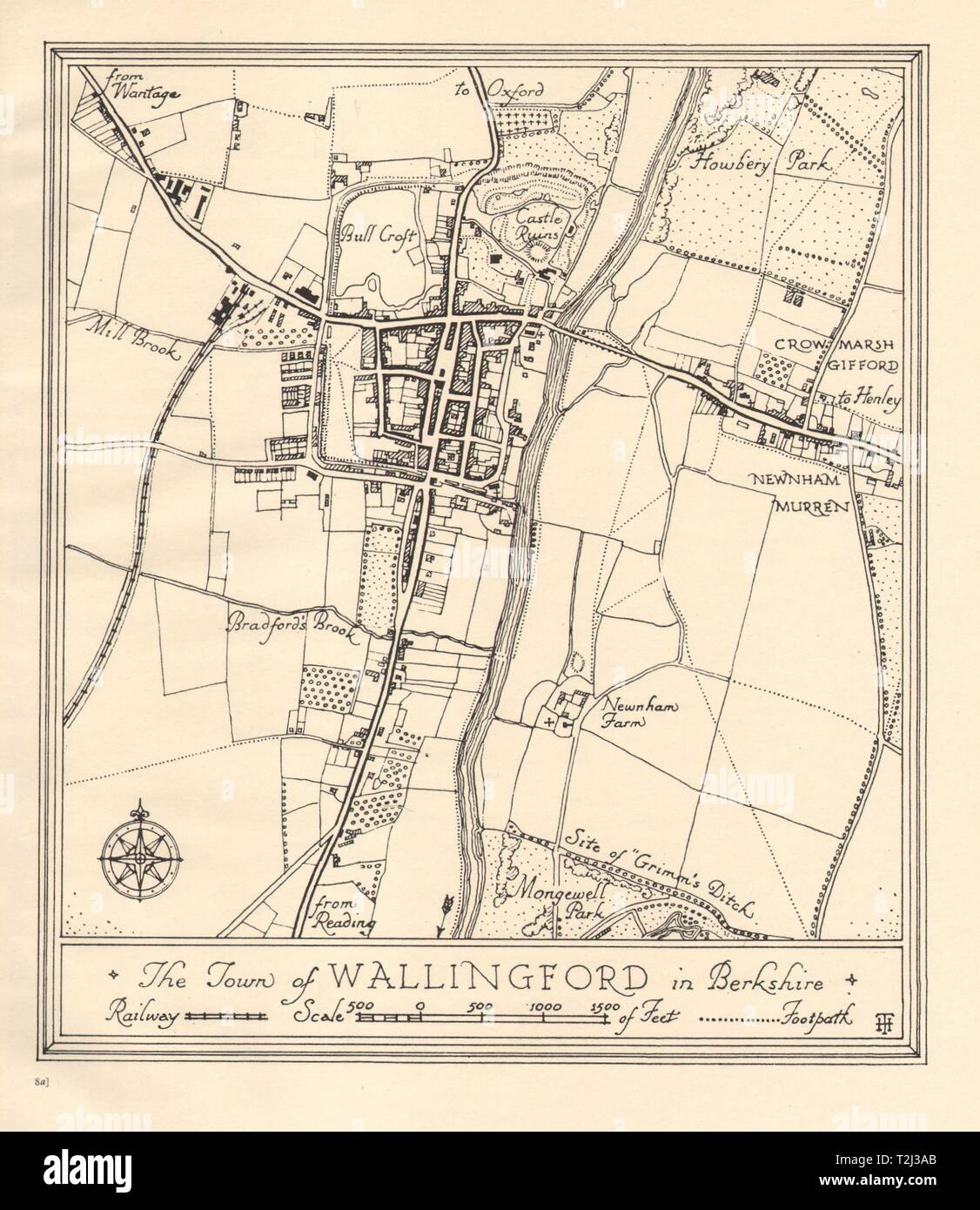 Town plan of WALLINGFORD, Oxfordshire. Thames Valley 1929 old